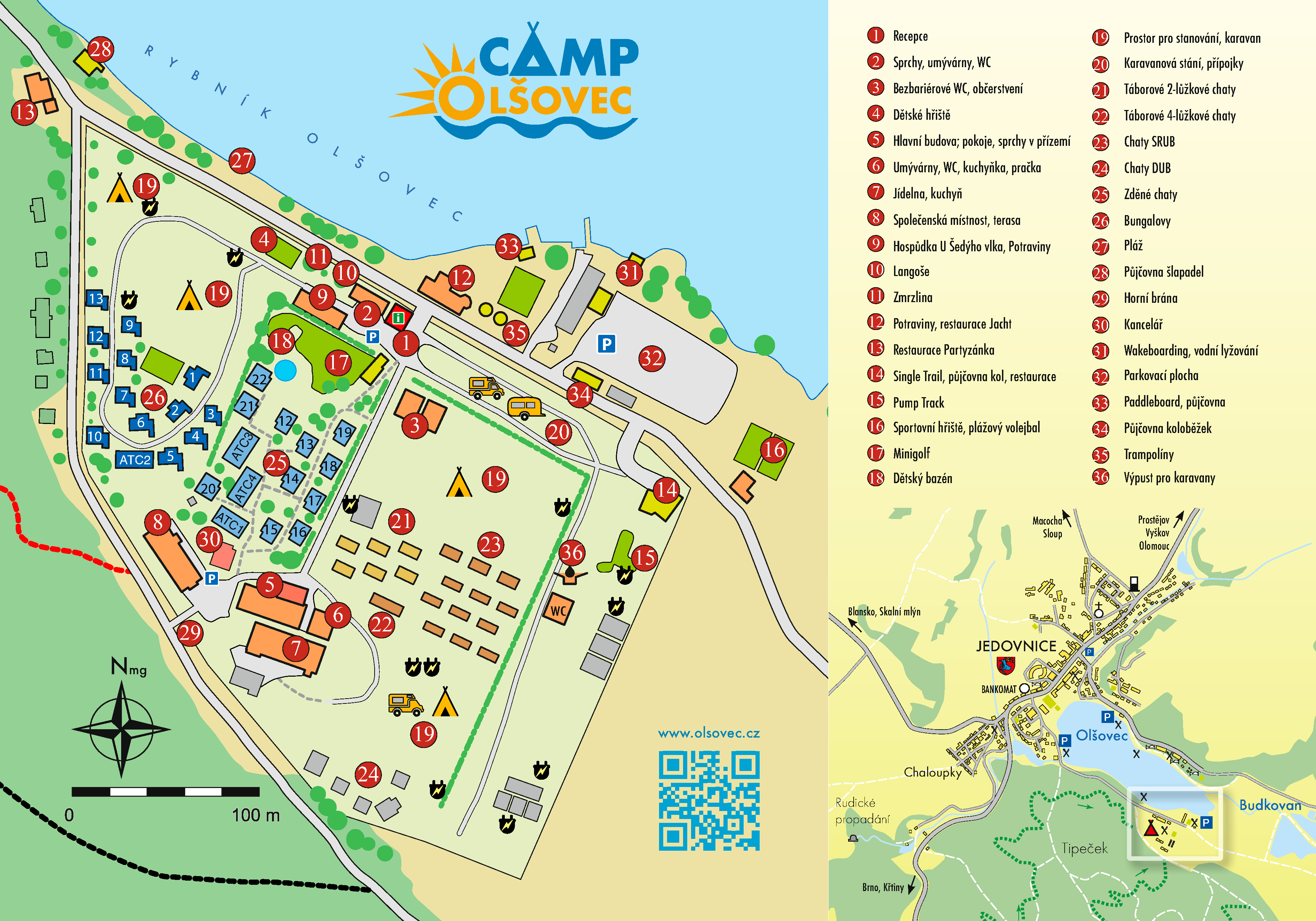 Leží na břehu stejnojmenného rybníka (40 ha) v obci Jedovnice. Kemp má kapacitu 1500 míst v různých formách ubytování: bungalovy, chatky, pokoje ve zděné budově, stany, karavany. K celoročnímu ubytování hosté využívají bungalovy a pokoje ve zděné budově.